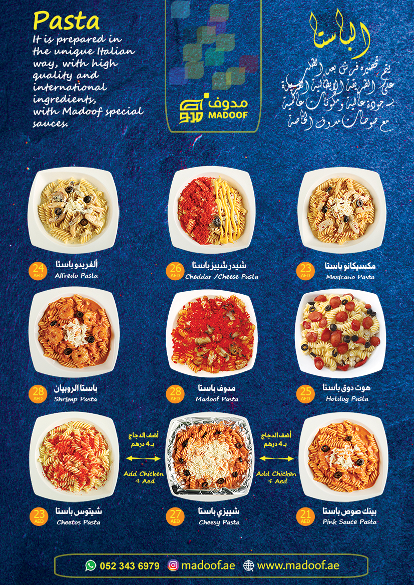 الباستا... يتم تحضيره مباشرة بعد الطلب على الطريقة الإيطالية مع مذاقنا وصوصاتنا الخاصة بنا